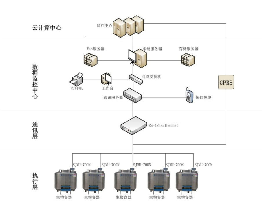 1、液氮罐監(jiān)控:實時采集低位、高位溫度,檢測液位高度;根據(jù)液位值和溫度值自動開關進液電磁閥;發(fā)送報警信息。